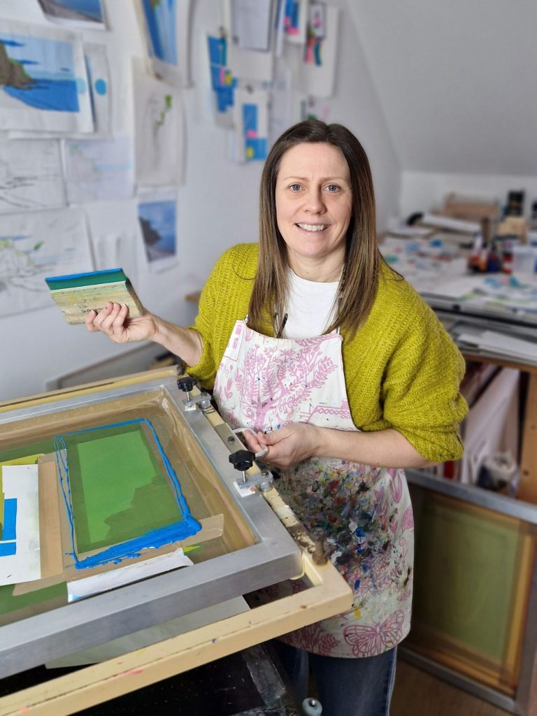 My passion has always been drawing and printmaking. Working in an illustrative style and using bold colour, I hope to capture the essence of an everyday object or landscape by making simple linear drawings or using photographs to evoke an emotion or memory. Most recently, after moving home to the area where I grew up, I take inspiration from the wonderful surrounding countryside of Aberdeenshire and its ever-changing, dramatic light, colour, and beauty.